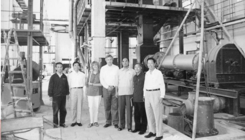 1989年,合肥院首臺(tái)自主開(kāi)發(fā)的HRM1250原料立式磨成功投運(yùn),各項(xiàng)技術(shù)指標(biāo)達(dá)到或超過(guò)設(shè)計(jì)要求,填補(bǔ)國(guó)內(nèi)空白。該成果于1993年通過(guò)建材行業(yè)部級(jí)鑒定,達(dá)到國(guó)際先進(jìn)水平,隨后榮獲“國(guó)家級(jí)新產(chǎn)品”、“國(guó)家優(yōu)秀節(jié)能科技成果”和國(guó)家建筑材料工業(yè)局建材行業(yè)部級(jí)科技進(jìn)步二等獎(jiǎng)等一系列榮譽(yù)獎(jiǎng)勵(lì)。圖為技術(shù)人員與院領(lǐng)導(dǎo)在該臺(tái)立式磨前合影